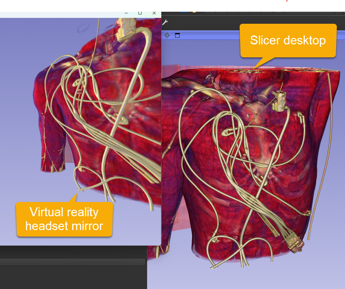 Left: Slicer view using OpenXR without shadows Right: VR view (with back lights / without two sided lighting)