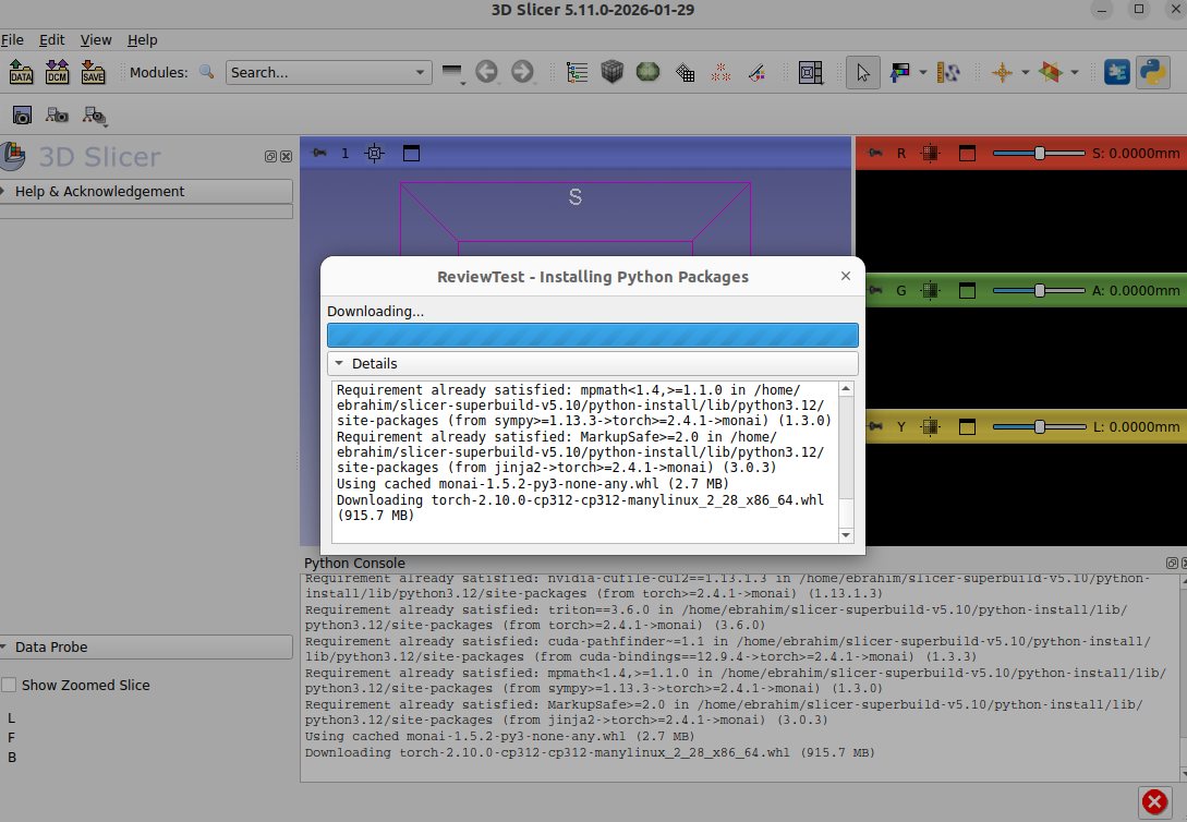 slicer.util.pip_ensure(reqs, requester="MyFilter")